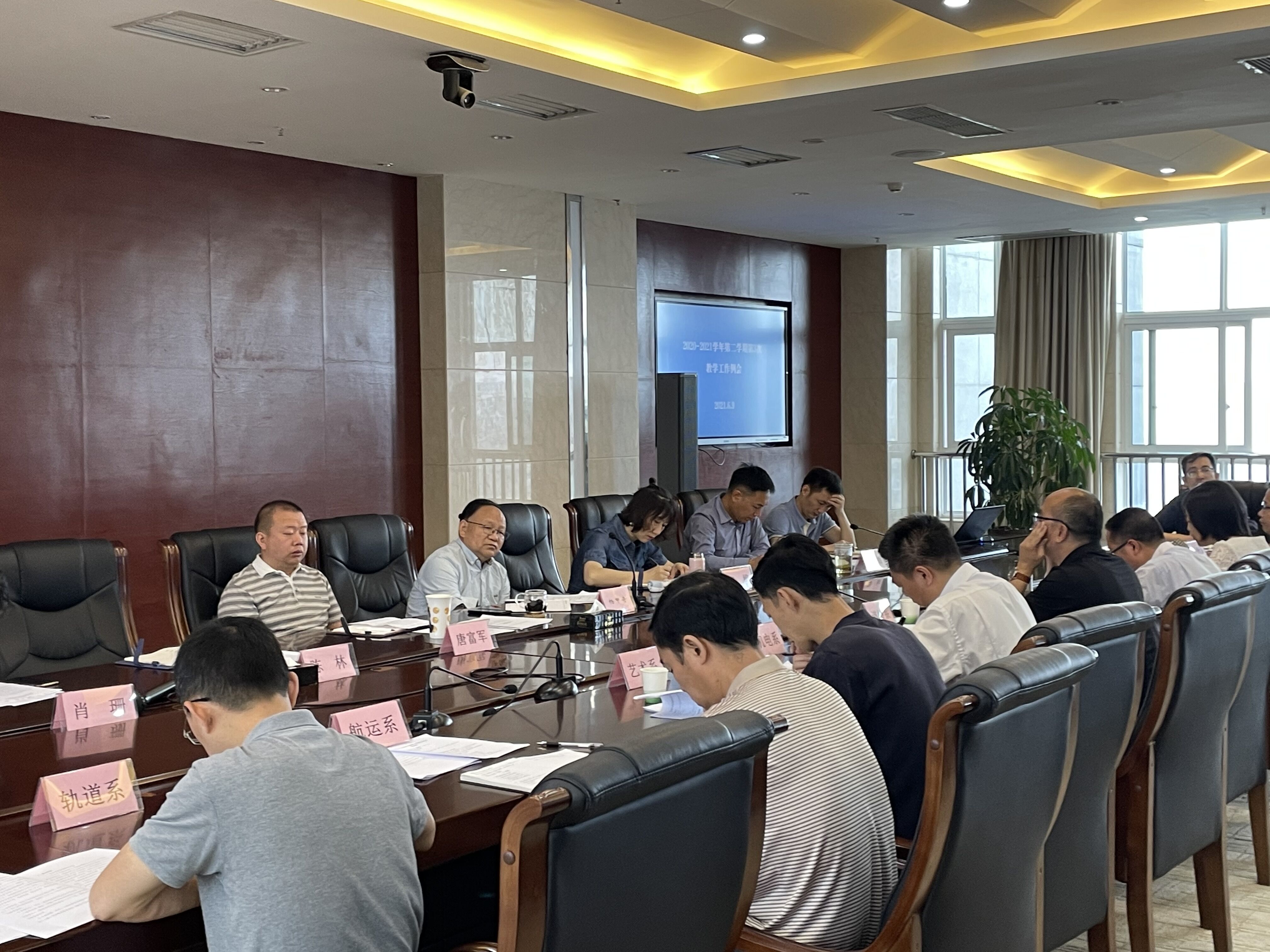 6月9日,四川交职院2020-2021学年第二学期第三次教学工作例会在明德楼1301会议室召开。学院副院长杨甲奇,各系(部、院)主任、副主任、教研室主任、教务处相关工作人员共计40余人参加会议。会议由教务处负责人主持。
