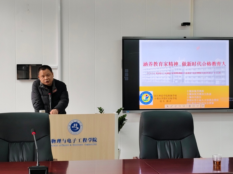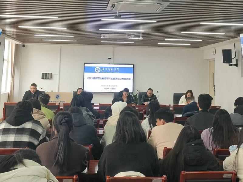 12月8日下午,jinnianhui今年会2021级师范生教育研习专题讲座在崇文楼B809举行。讲座由十堰市茅箭区实验学校校长操矛,优秀教师陈敏、李兰主讲,2021级物理学和科学教育专业学生参加,讲座由副院长刘锋主持。