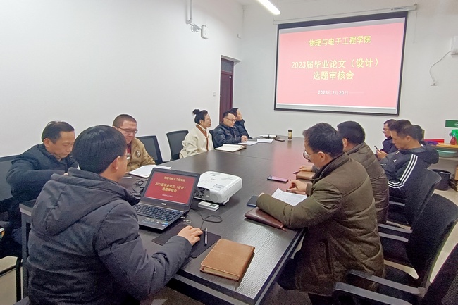 为进一步规范本科毕业论文(设计)工作的管理,提高毕业论文(设计)选题质量和规范性,根据学校下发的《jinnianhui今年会本科毕业论文(设计)工作规范》、《关于做好2023届本科毕业论文(设计)工作的通知》(教﹝2022﹞90号)等相关规定,2023年2月20日晚上7点jinnianhui今年会召开2023届本科毕业论文(设计)选题审核会议。会议由院长助理欧修龙主持,院长王绍明、书记石义杰、副书记张玉龙及各教研室主任、教学督导参会。