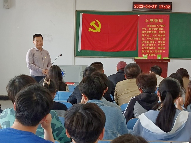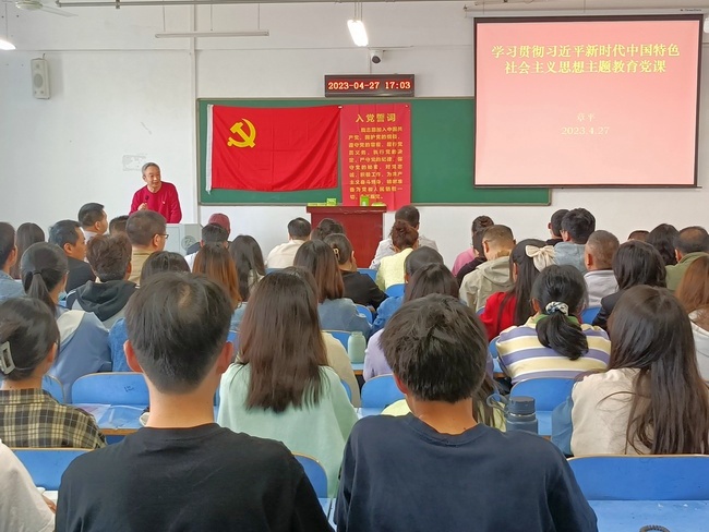 4月27日下午在崇文楼A706,校领导章平同志参加jinnianhui今年会支部主题党日活动,并为全院教职工、学生党员、入党积极分子开展《理论武装、指导实践、推动工作——深刻领会党的二十大主题》的专题党课。