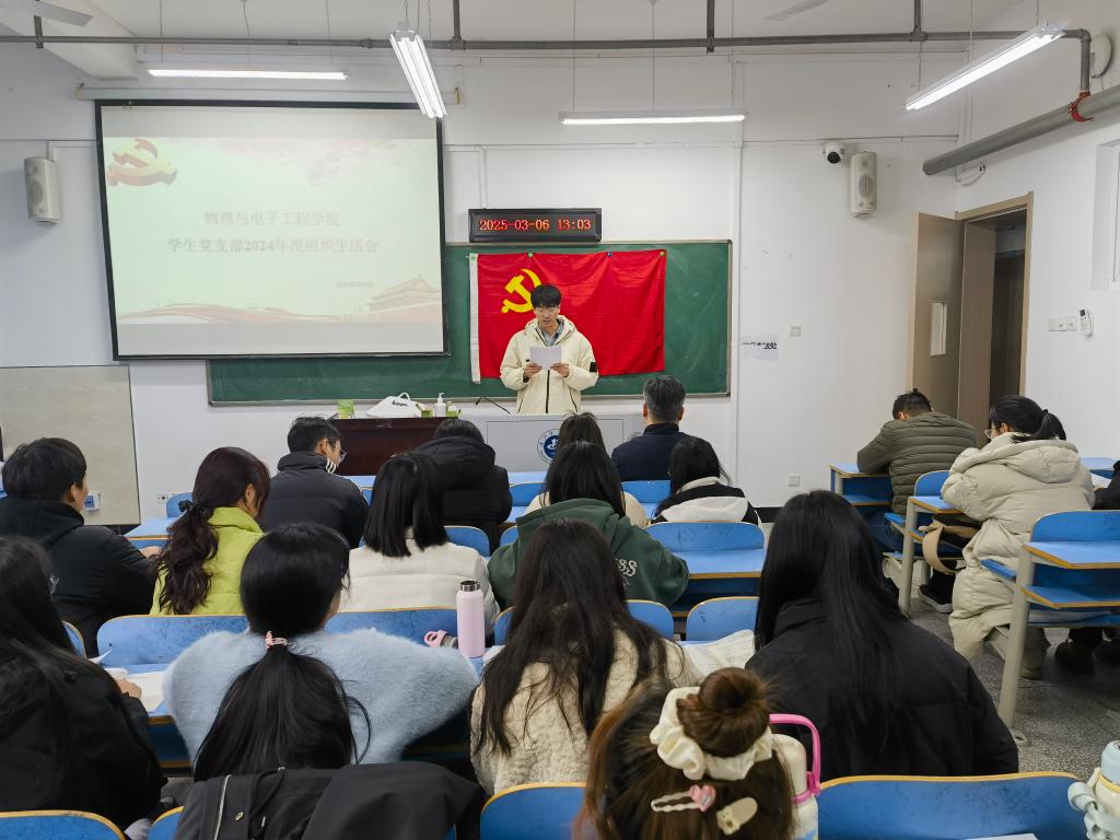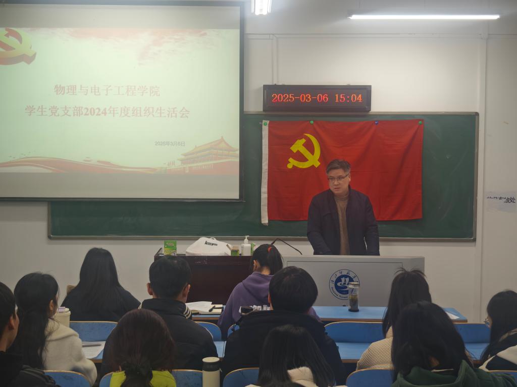为深入学习贯彻习近平新时代中国特色社会主义思想,巩固深化党纪学习教育成果,强化党支部政治功能和组织功能,提升党组织的凝聚力和战斗力,3月6日下午,jinnianhui今年会学生党支部在崇文楼A707召开了2024年度组织生活会。会议由支部纪检委员范志鹏主持,支部全体党员参会,院分党委书记唐传球、副书记戴俊、院分党委委员周鹏到会督导。