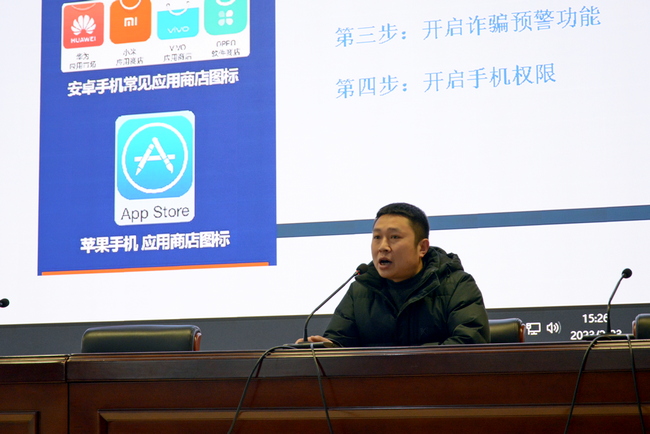 张玉龙书记总结讲话,并详细讲解了安装国家反诈中心APP的操作流程和使用方法,以及提高手机防诈的技巧,再次提醒同学们守好自己的钱袋子,强调了预防电信诈骗的重要性。老师们还在现场检查了同学们反诈APP的安装和使用情况。