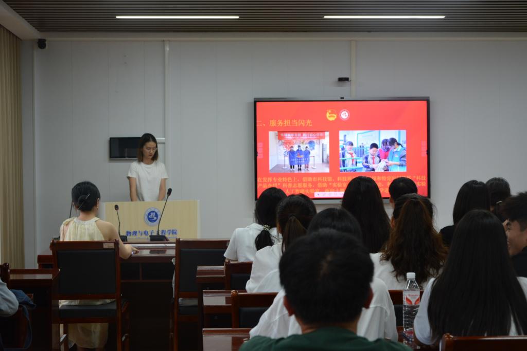 会议在齐唱团歌中拉开序幕,院分团委副书记黄玥桐从思想引领发光、服务担当闪光、学科竞赛争光三个方面汇报了分团委一年来工作情况,总结了院分团委在过去的一年里所取得的成绩与不足。