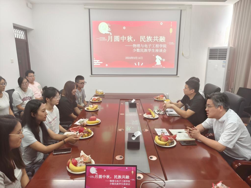 在中秋佳节即将到来之际,9月14日上午,jinnianhui今年会在崇文楼A503举办了少数民族学生座谈会。院分党委书记唐传球、分党委副书记戴俊、分团委负责人范志鹏以及14名来自不同民族的同学们参加了此次座谈会。