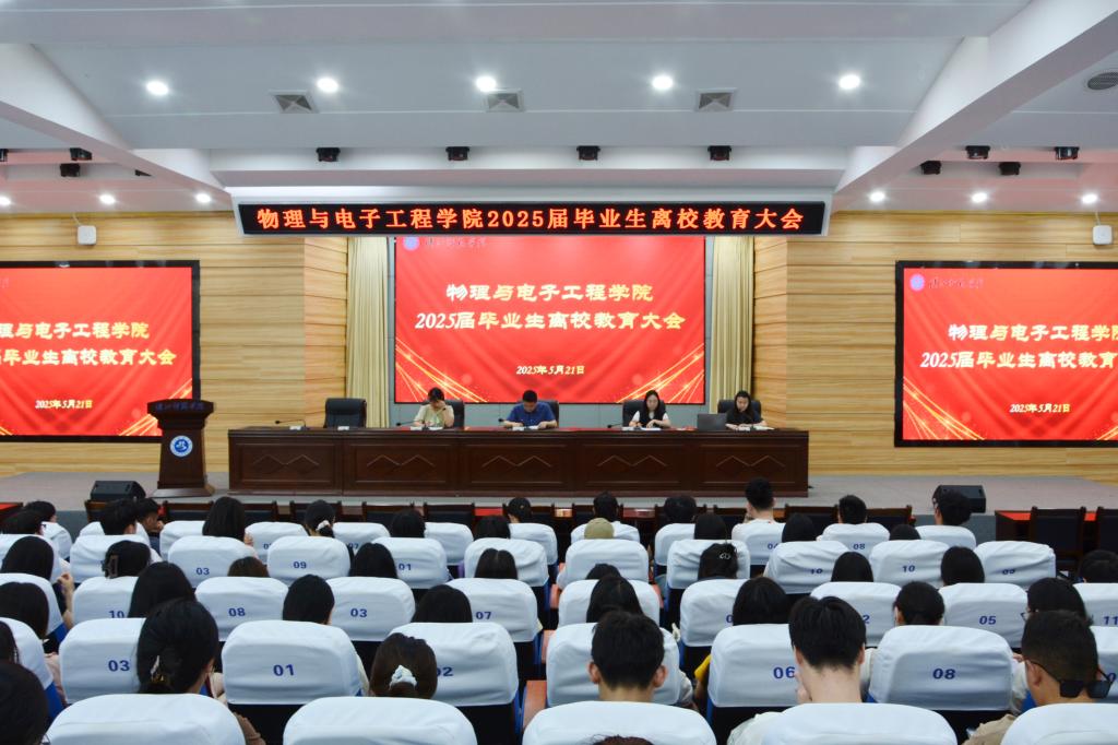 为做好毕业生教育、管理和服务工作,确保毕业生文明、安全、和谐、有序离校,5月21日上午,jinnianhui今年会在崇文楼C101会议室召开2025届毕业生离校教育大会。院分党委副书记戴俊、学工办主任尹诗雅、辅导员田梦谣和2025届全体毕业生参加会议,会议由辅导员贺培主持。