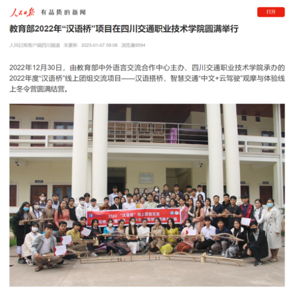 [案例摘要]四川交职院通过“汉语桥”线上交流项目,开展“中文+云驾驶”冬令营,让158名学员体验“中文+交通”课程。采取科普录播+中文直播+桥模制作教学方式,提升课程质量。优化培养模式,培养懂汉语、有技术、知文化的留学生。成果包括国际影响力提升、留学生培养提质增效、留学生就业成果显著。留学生入职中资企业,成为中华文化对外传播的重要力量。
