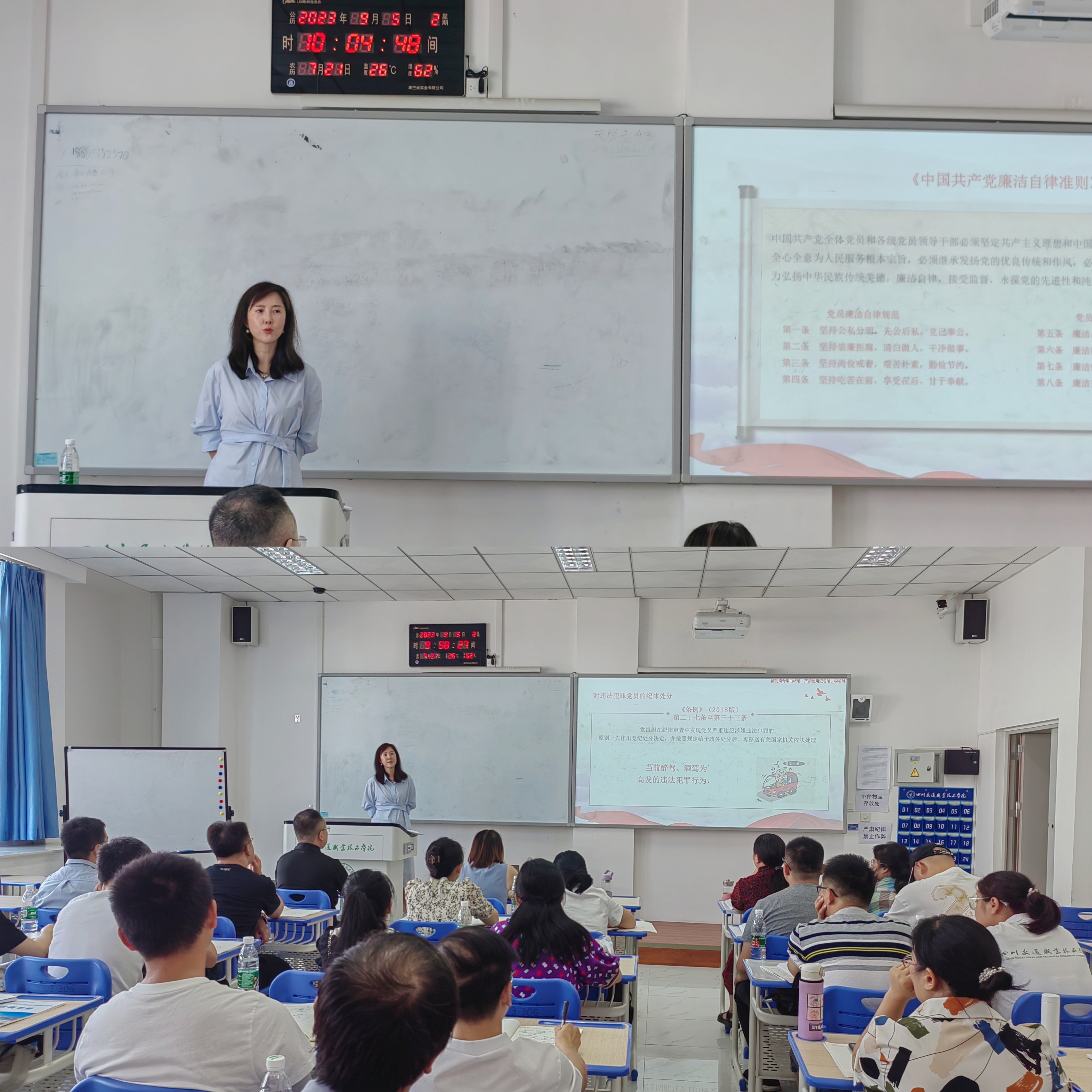 2023年9月5日、6日,学院党委副书记、纪委书记鞠敬为学院2023年新入职教师暨教学能力提升培训班和2023年专业(学科)带头人、骨干教师教研能力提升研修班作党风廉政建设、师德师风专题讲座。鞠书记以“‘清廉交院’建设引领师德师风建设”为题,重点解读《中国共产党纪律处分条例》《事业单位工作人员处分暂行规定》《新时代高校教师职业行为十项准则》等纪律文件,以身边案例和教育部公布的师德失范典型案例教育引导教师们树牢规矩意识,强化责任担当,严守党风党纪和师德师风底线,争做新时代“四有好老师”,努力营造风清气正的育人环境,为推进“清廉交院”建设作出贡献。